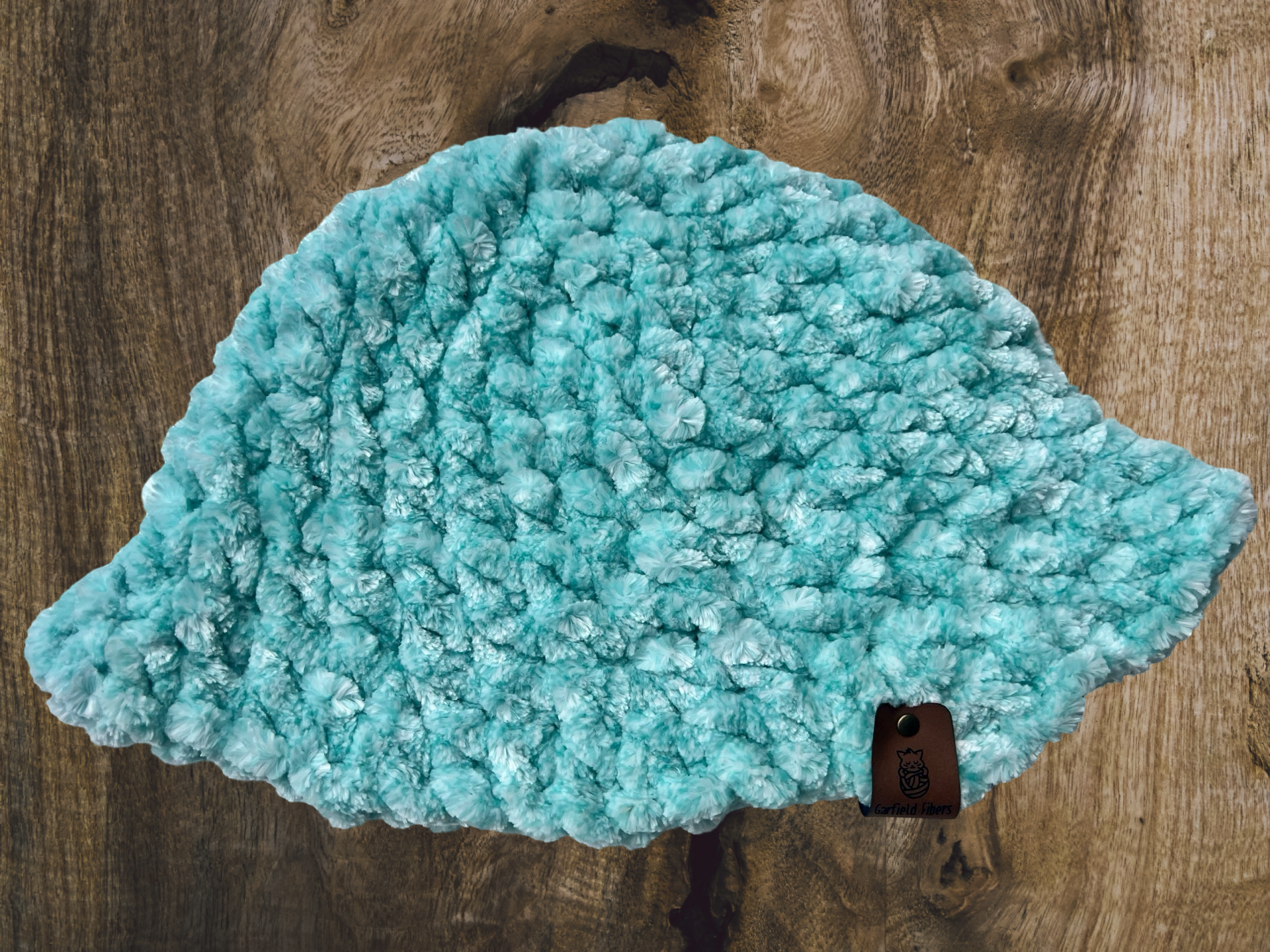 A crochet bucket hat made with soft, bulky velvet yarn. Unisex. This size fits most.