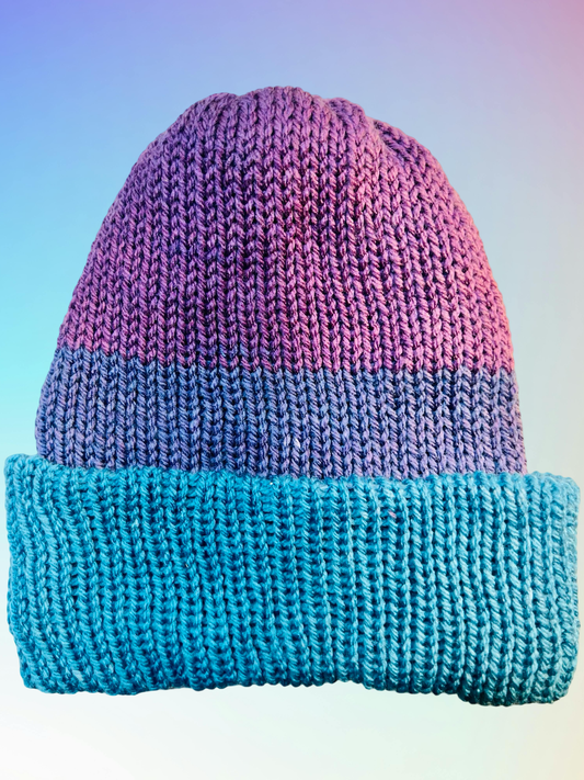 Blue and Lavender Reversible Knit Beanie