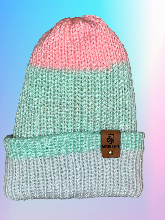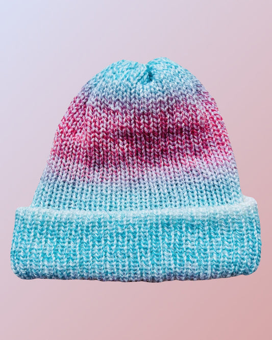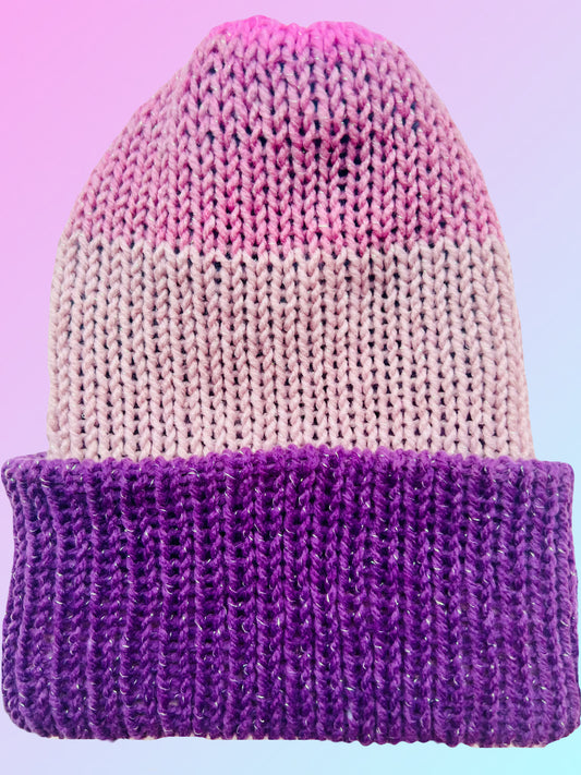 Blue and Pink Reversible Knit Beanie